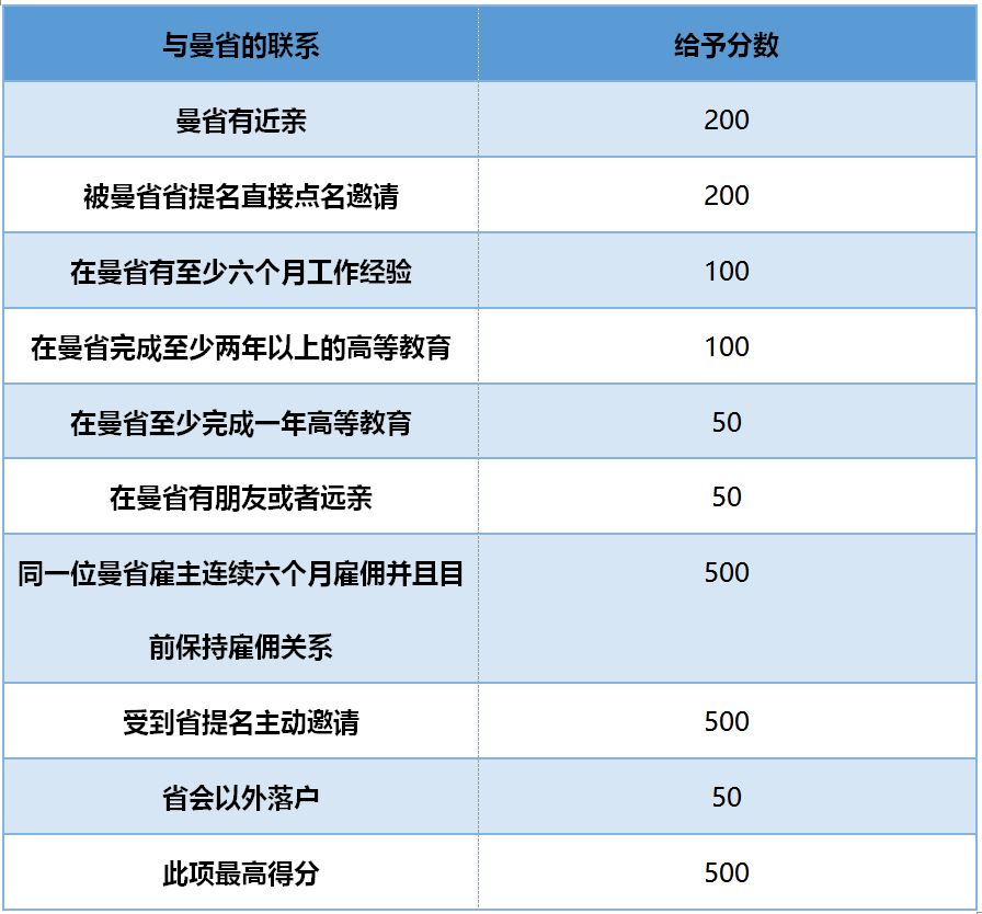 曼省有自己的评分系统,满分1000分,其中在曼省有雇主可以获得500分,但是在外省读过书或者有亲戚会被扣分